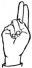 На ћирилици написано НИКОЛИНА КОЈОВИЋ састоји се из 15 слова [?]. Исписано ћириличном једноручном азбуком за глувонеме: